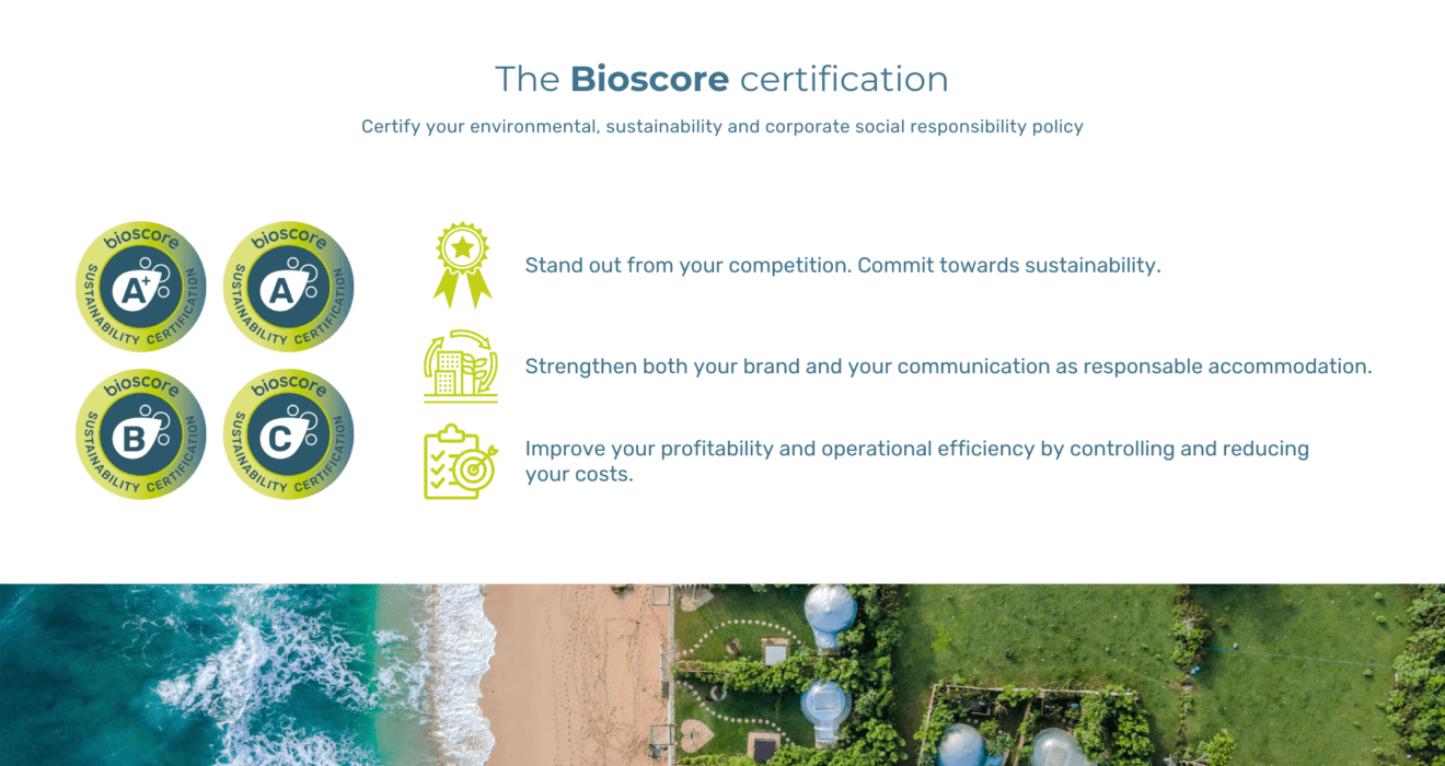 Achieve the Bioscore Sustainability Certification for your accommodation